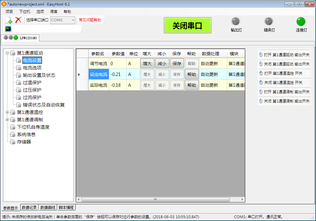 免费提供上位机软件,可实现参数观测、设置、数据记录和曲线显示等功能。
