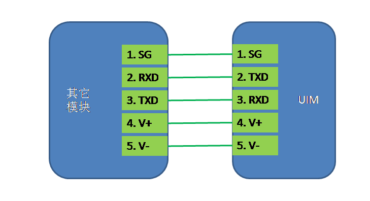 UIM通过串口和我司的其它产品相连。采用5针PH2.0接口。包装里提供1根5针直连排线,直接连接UIM和其它模块的UI RS232插座即可。